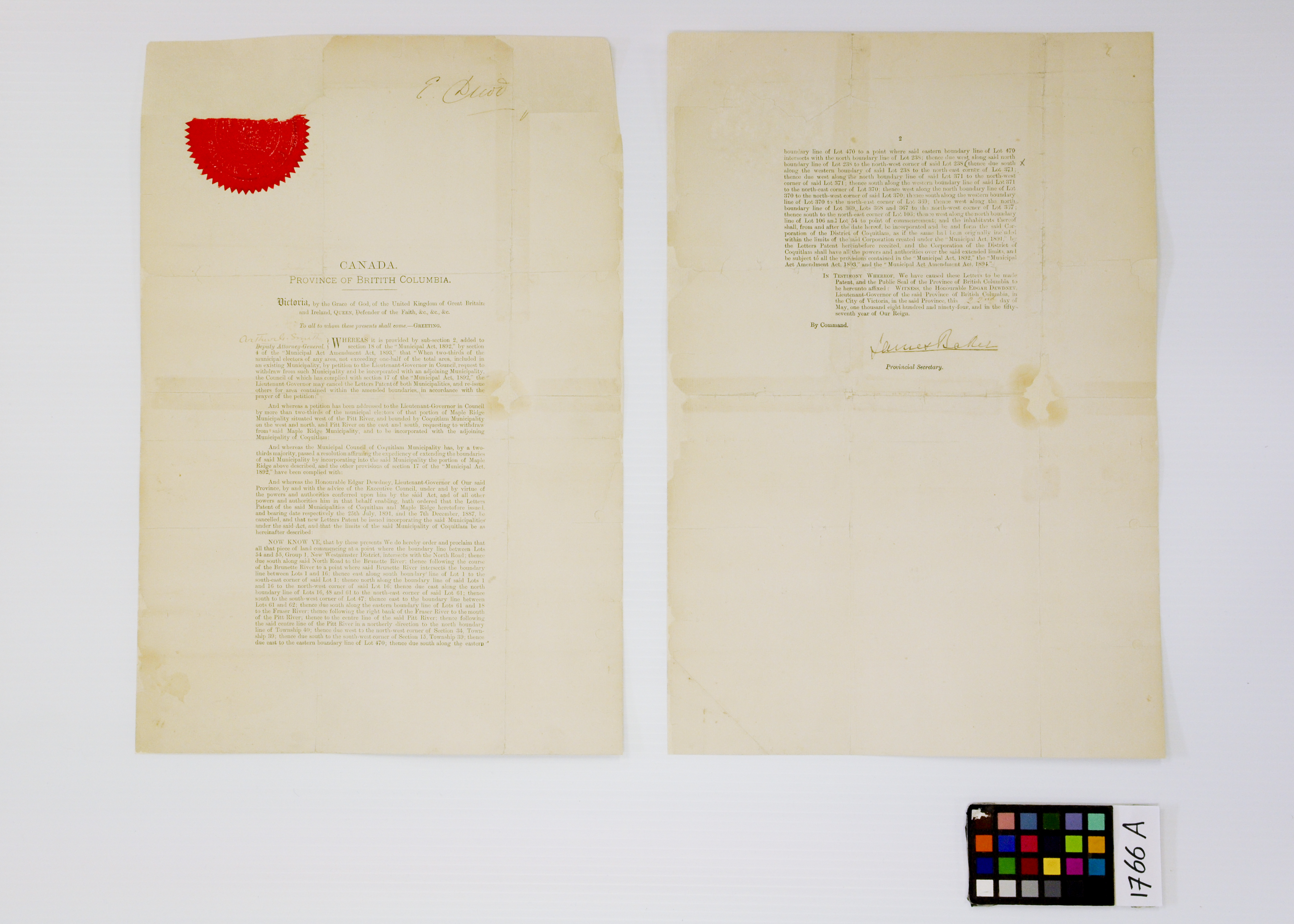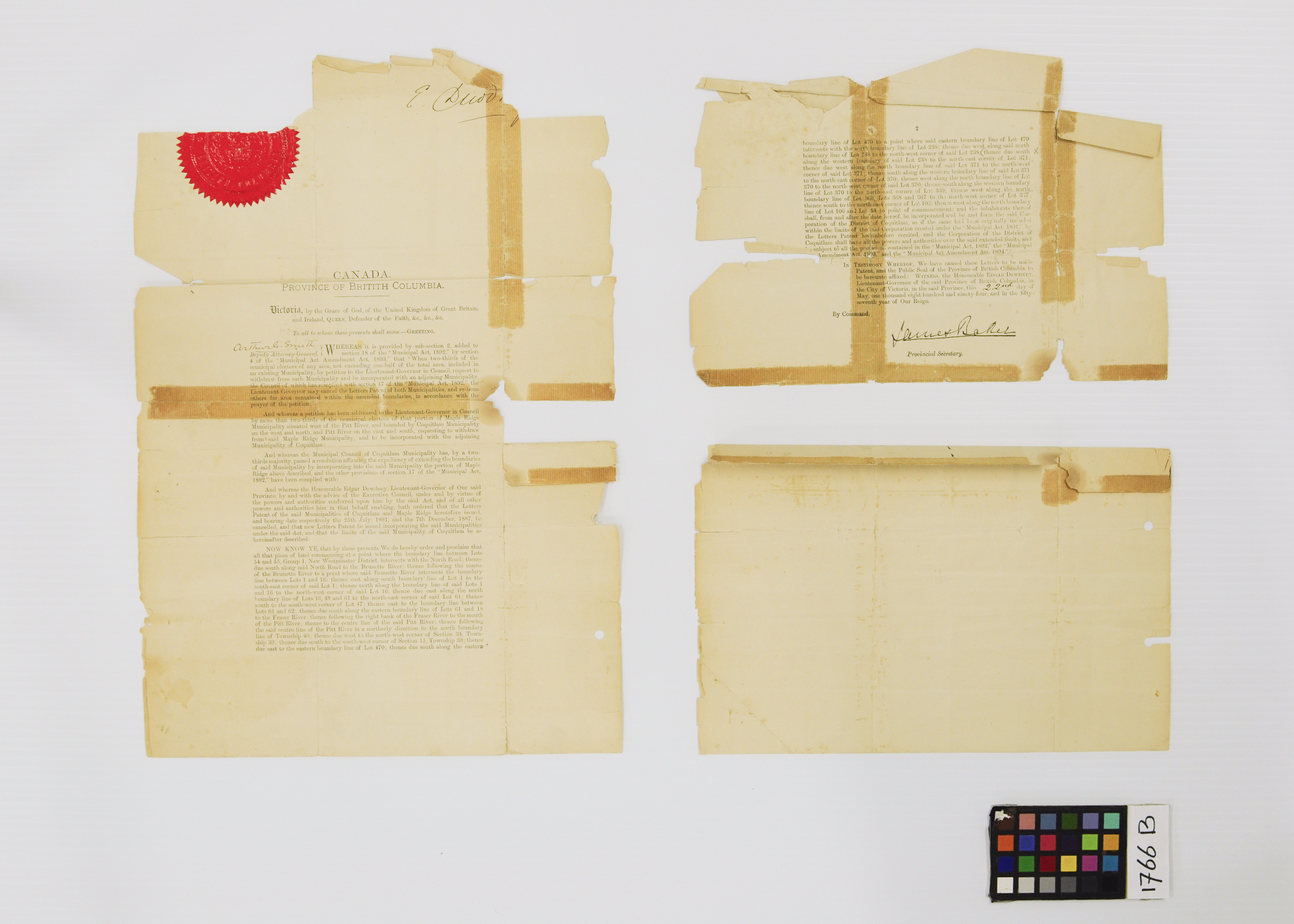 Time is not always kind to historical documents. By the time the City of Coquitlam Archives was founded in 2013, the 1894 Letters Patent had deteriorated to a point that it was no longer safe to view or handle them.
