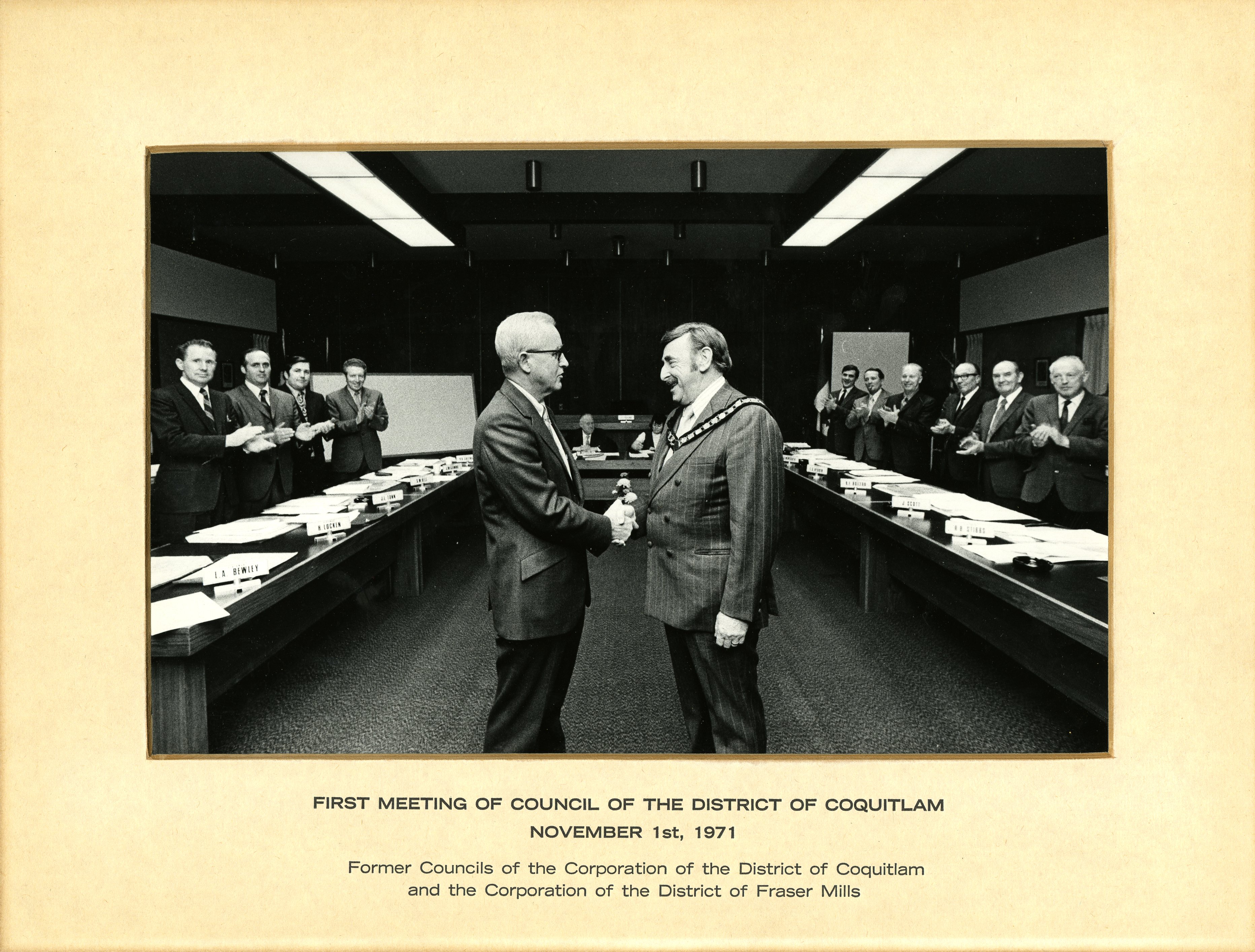 The individual Letters Patent for both municipalities were revoked and new Letters Patent were signed on October 7, 1971. The amalgamated district was then known simply as the District of Coquitlam.