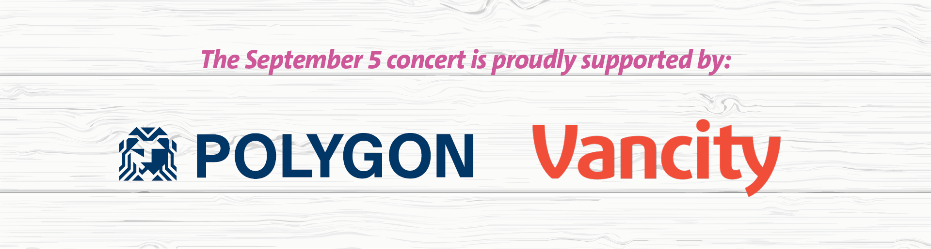 Thank you to our 2025 event partners for supporting the Summer Concert Series – Polygon Homes and Vancity Credit Union.