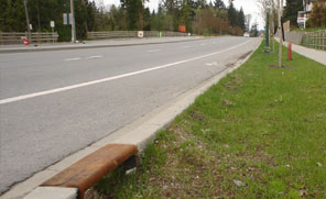 Roadside swales (JPG) are shallow grassed or vegetated channels that capture, detain and treat road runoff and convey larger flows. The captured water is infiltrated to the ground to recharge the water table and provide base flows for streams.